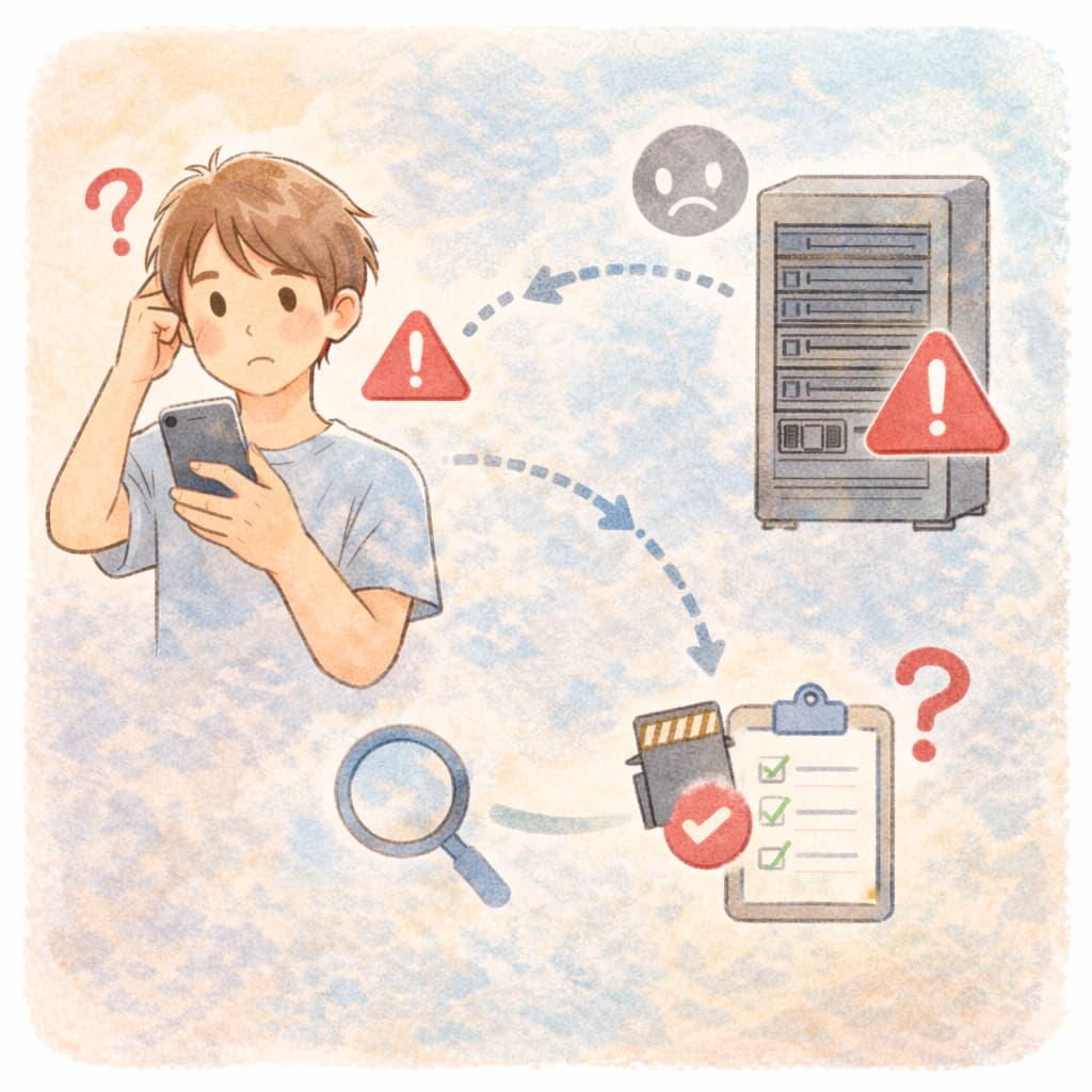サーバー側の一時障害が疑わしい場合、最も有効な対処は「触りすぎないで時間を置く」ことです。