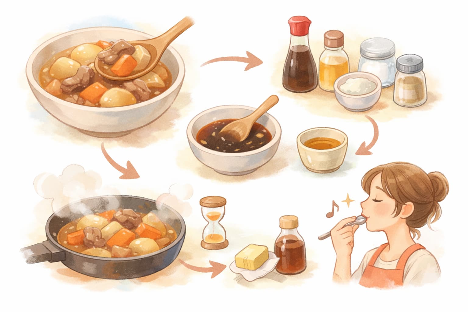 肉じゃがが味薄いときは、まず「なぜ薄いのか」を冷静に見極め、少量ずつ段階的に調整することが成功の鍵です。