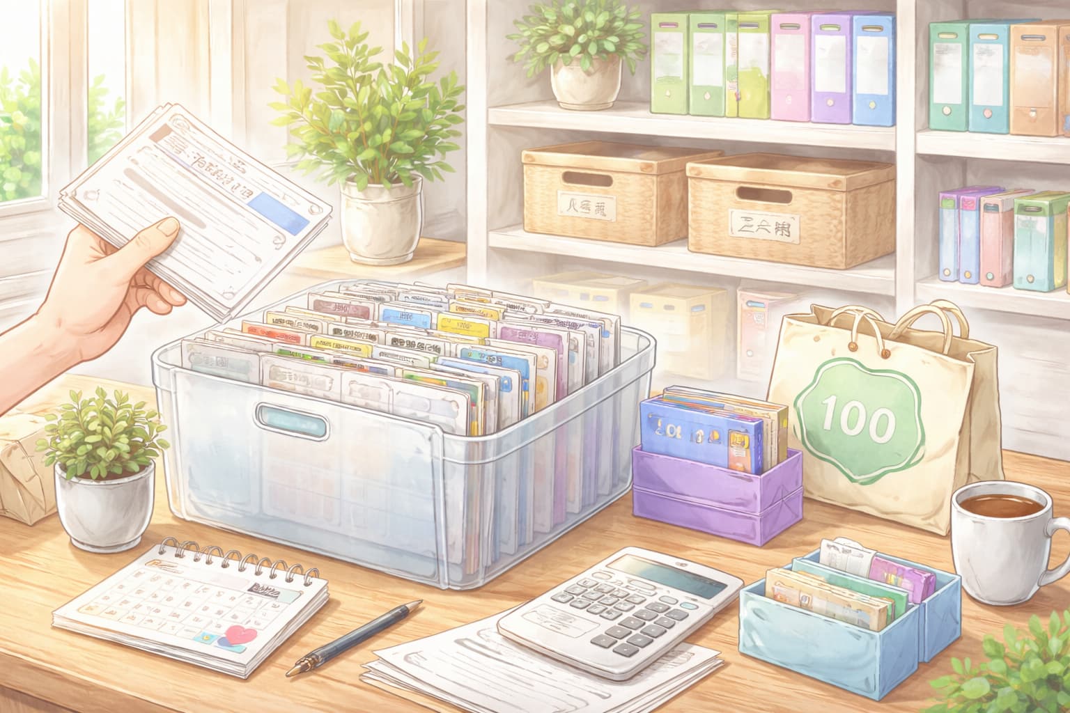 100均で手に入るファイルやケースを上手に組み合わせるだけで、十分に実用的で整った保管環境を作ることができます。