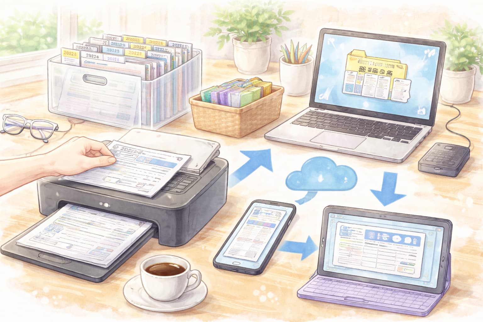 データ管理に不安がある方や、すぐに取り出して確認したい場面が多い方にとっては、紙のまま整理しておく方法が向いています。