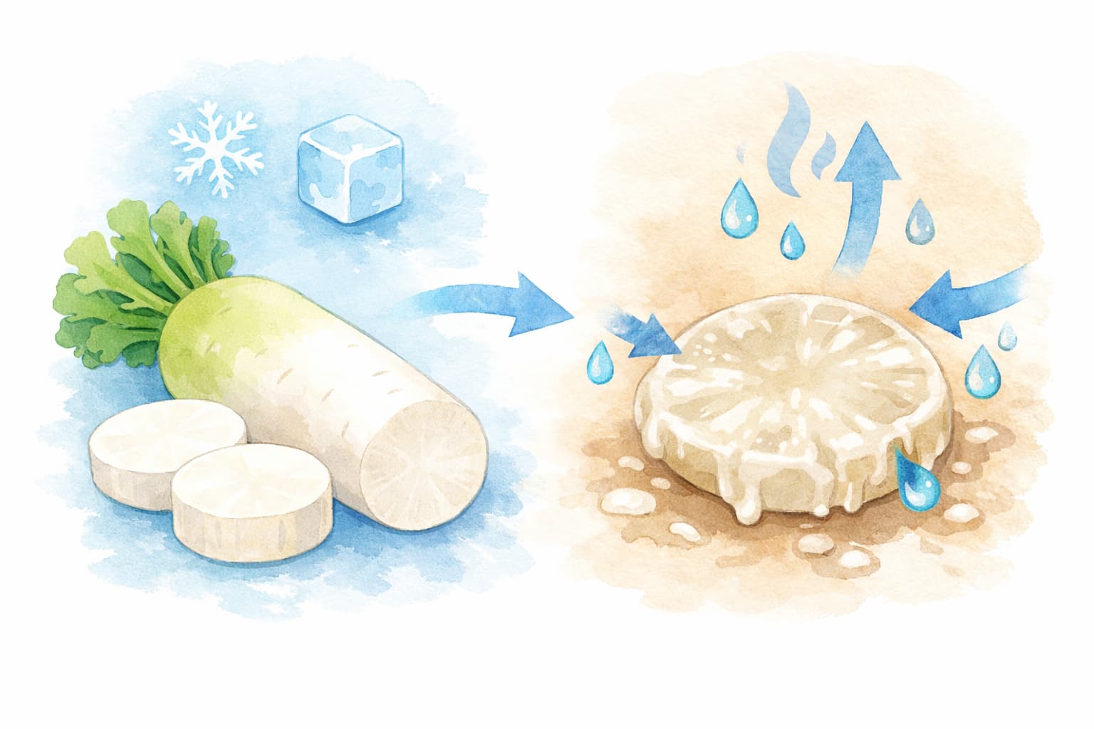 冷凍大根の食感変化は、水分と細胞構造の変化による自然な現象です。
