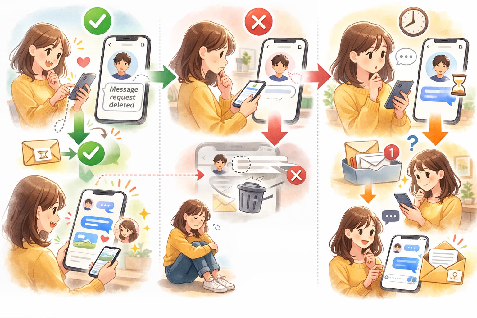 Instagramではさまざまな条件によってメッセージがリクエスト扱いになるため、まずは冷静に状況を整理することが大切です。