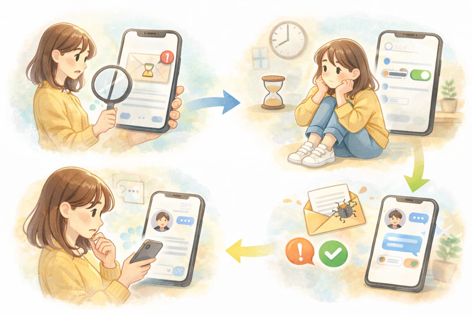 「どうすればいいのか分からない」と感じたときは、感情的に追加メッセージを送る前に、順番に確認することが最短解決につながります。