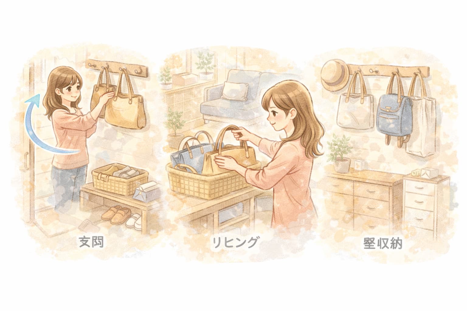 まずは一番使うバッグの置き場を一つ決めるところから始めてみてください。