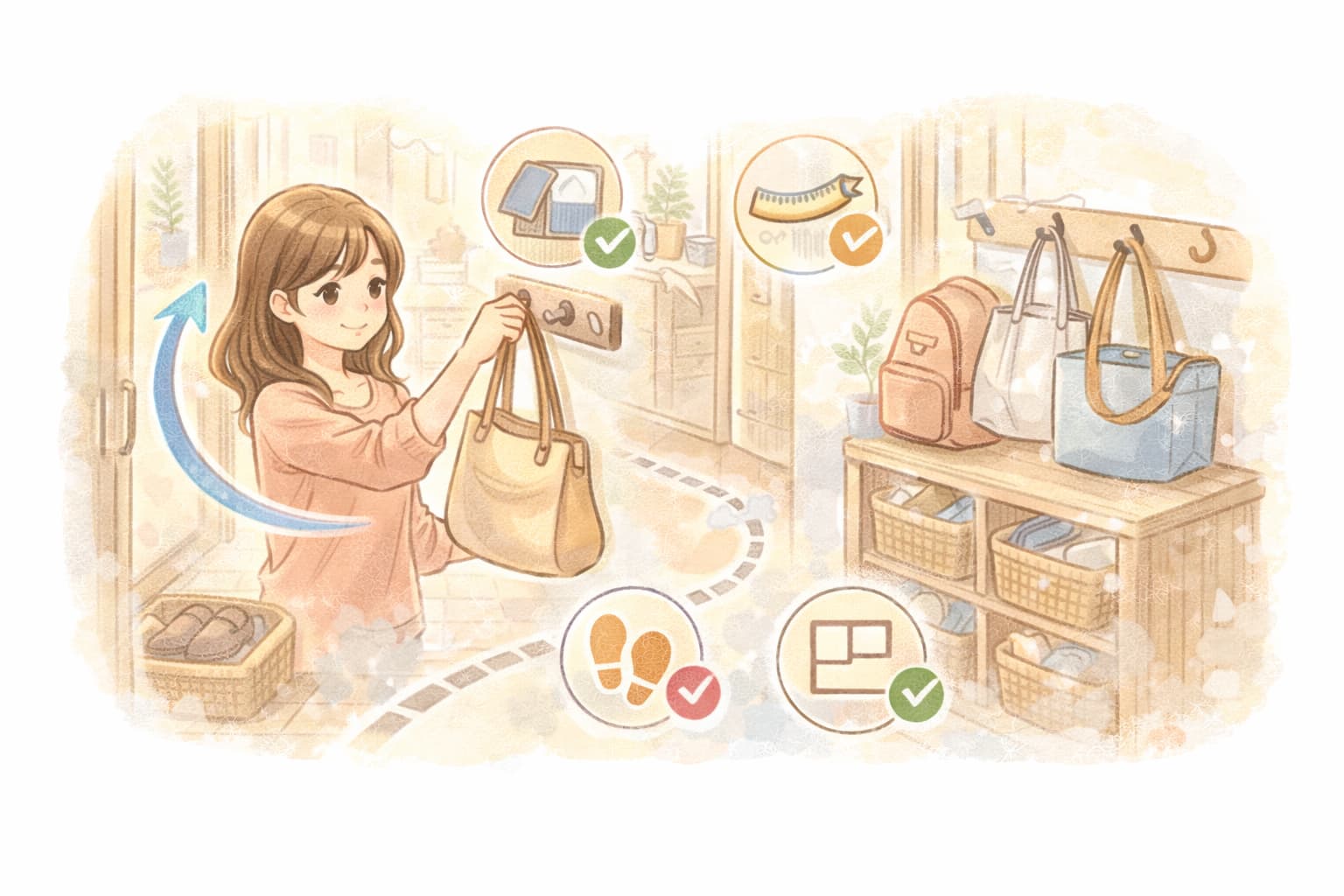 この流れが習慣になると、朝にバッグを探すことや、必要なものを入れ忘れることも減りやすくなります。