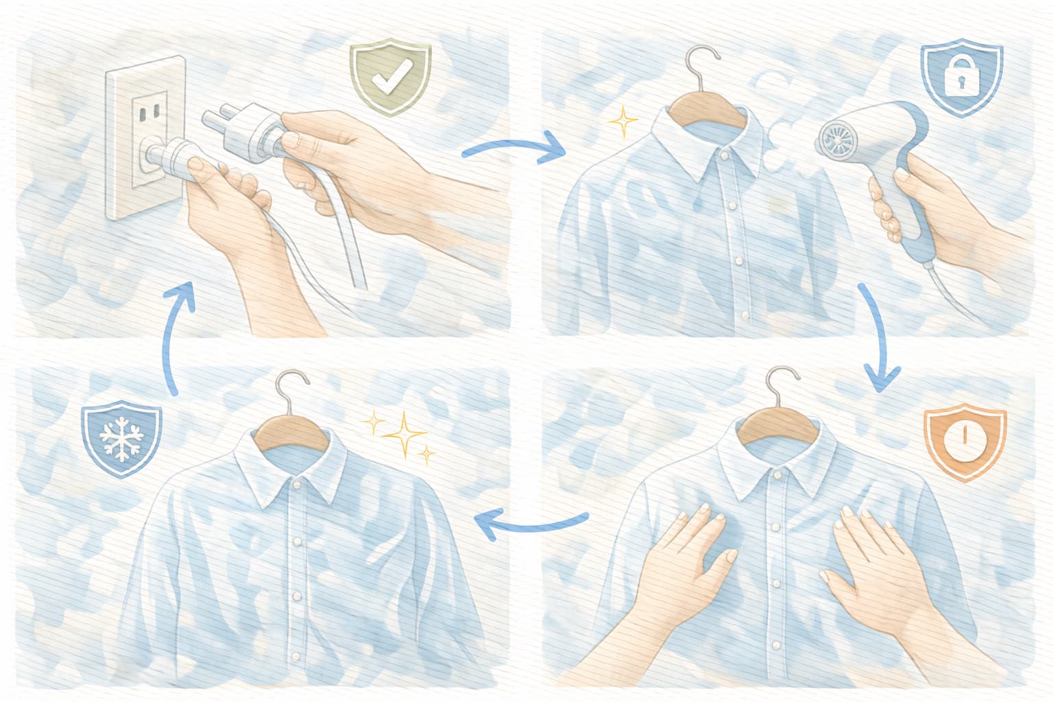 ドライヤーは便利ですが万能ではないので、素材が不安な場合は蒸気や干し直しに切り替えると失敗が減ります。