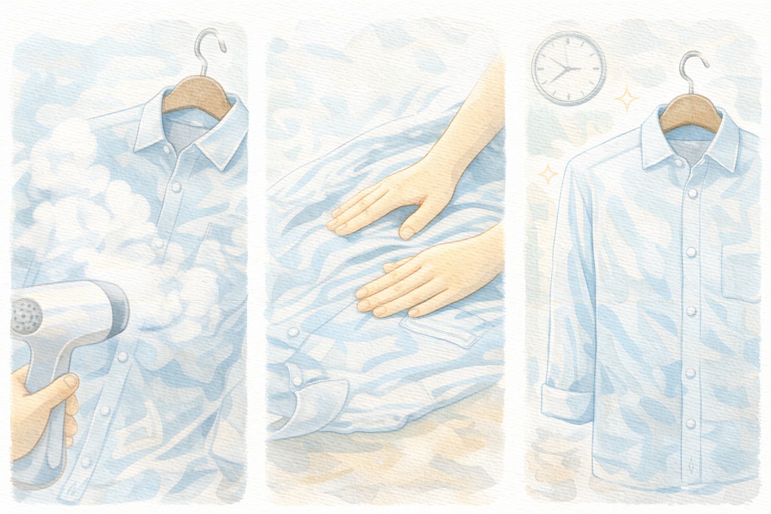 - 方法2:霧吹き(または水)+手で伸ばして自然乾燥(軽いシワ向け)