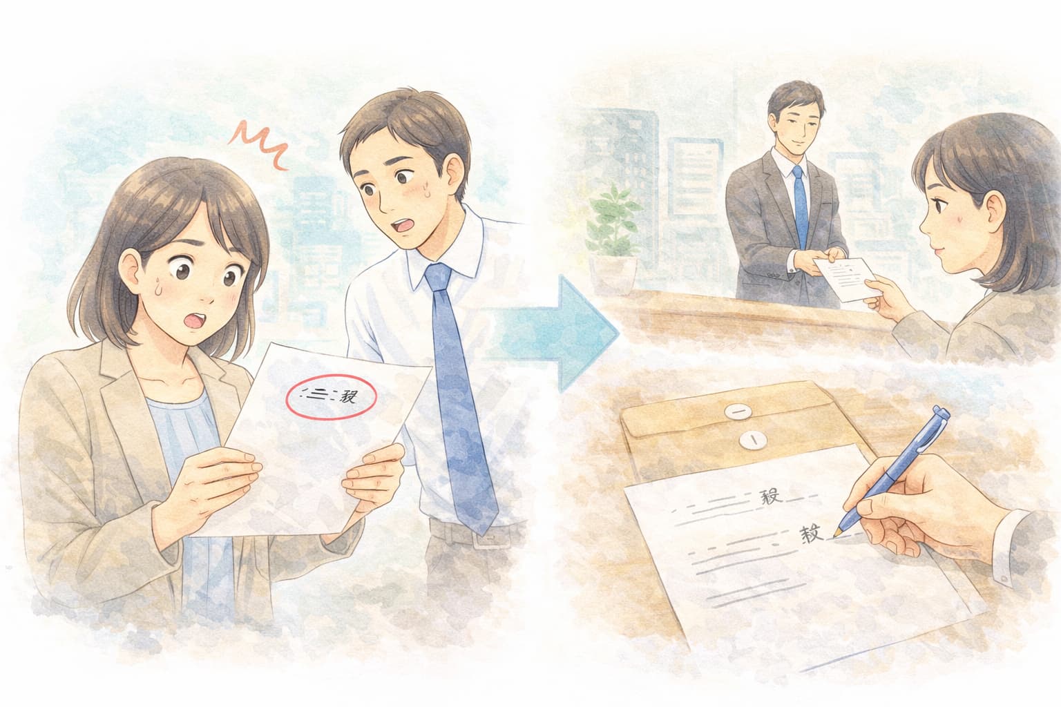 書面の誤記は、状況によっては差し替えが必要になりますが、無理に回収しようとすると相手の手間が増えます。