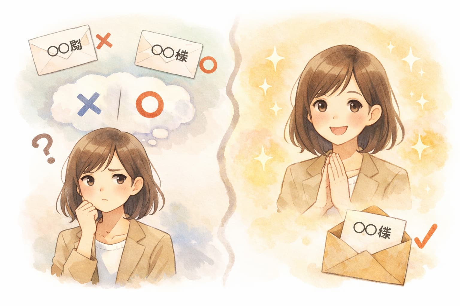 宛名の敬称は、同じ言葉でも「誰に」「どの形式で」送るかで適切さが変わります。