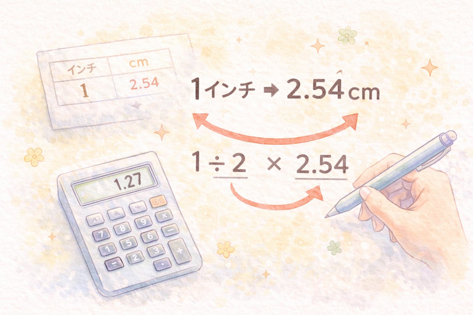 換算の流れとしては、まずインチをセンチへ直し、そのあと必要ならミリへ変えるという順番にするとわかりやすいです。