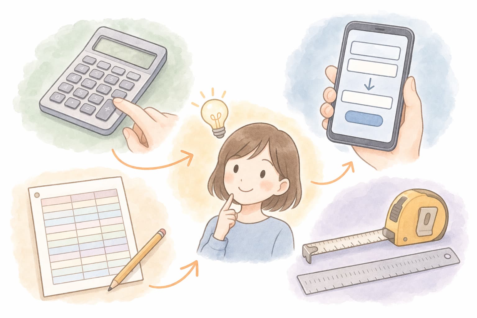 スマホで換算を確認するときは、単位換算のアプリや検索機能を使う方法もありますが、基本の計算を知っていると結果の見方がわかりやすくなります。