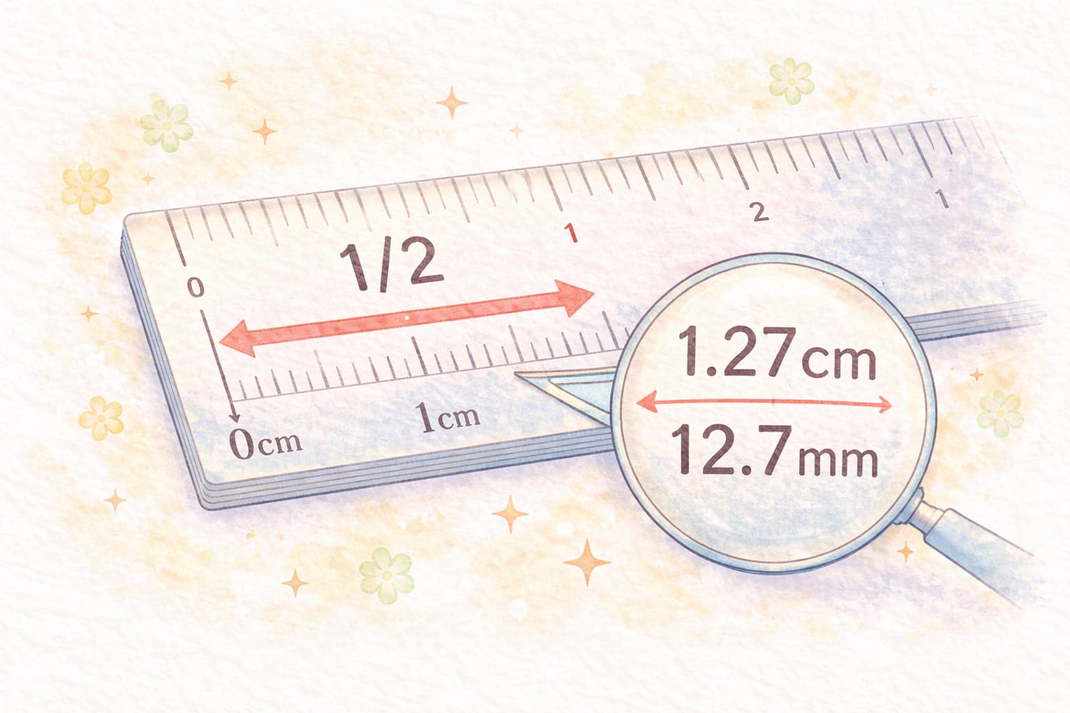 また、12.7mmという数字まで一緒に覚えておくと、センチ表記よりミリ表記を使う場面でも迷いにくくなります。