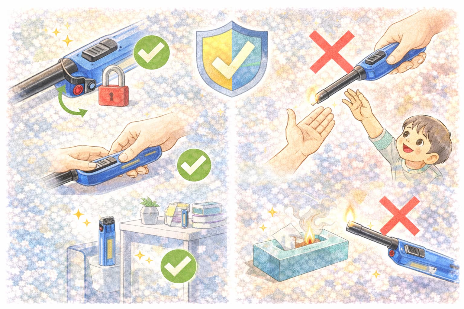 誤作動を防ぐために、ロック機能を活用し、使用後はスイッチを戻して子どもの手の届かない場所に保管するなど、日常的な配慮が事故を防ぎます。