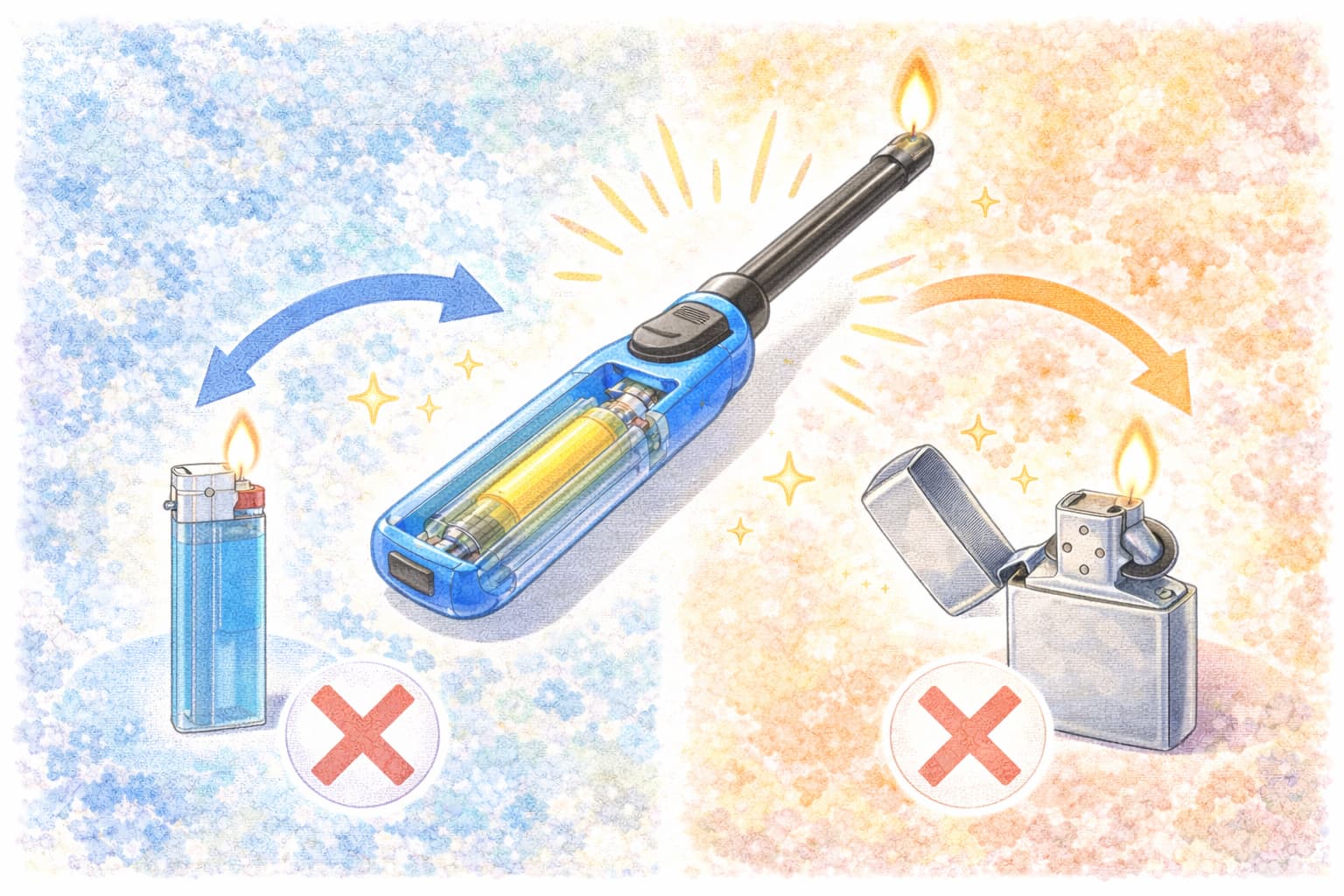 しかし、市販の着火ライターや100均商品、多目的ライターとはどのような違いがあるのでしょうか。