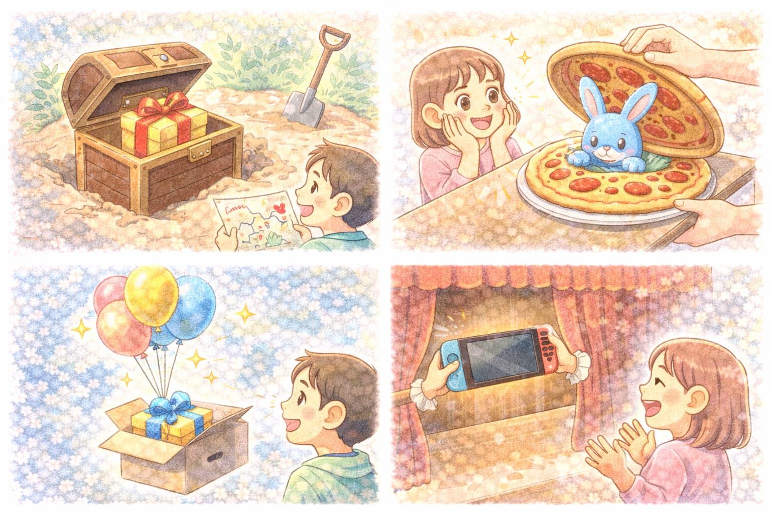 そこで、ここでは子どもが夢中になれる“遊び心いっぱい”のプレゼント渡し方を3つ紹介します。