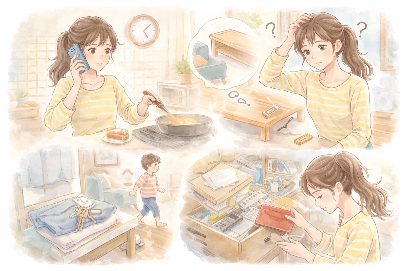 例えば、外出前の準備中や仕事・家事に追われている最中は、注意が分散しやすく、物を置いた瞬間の記憶が曖昧になりがちです。