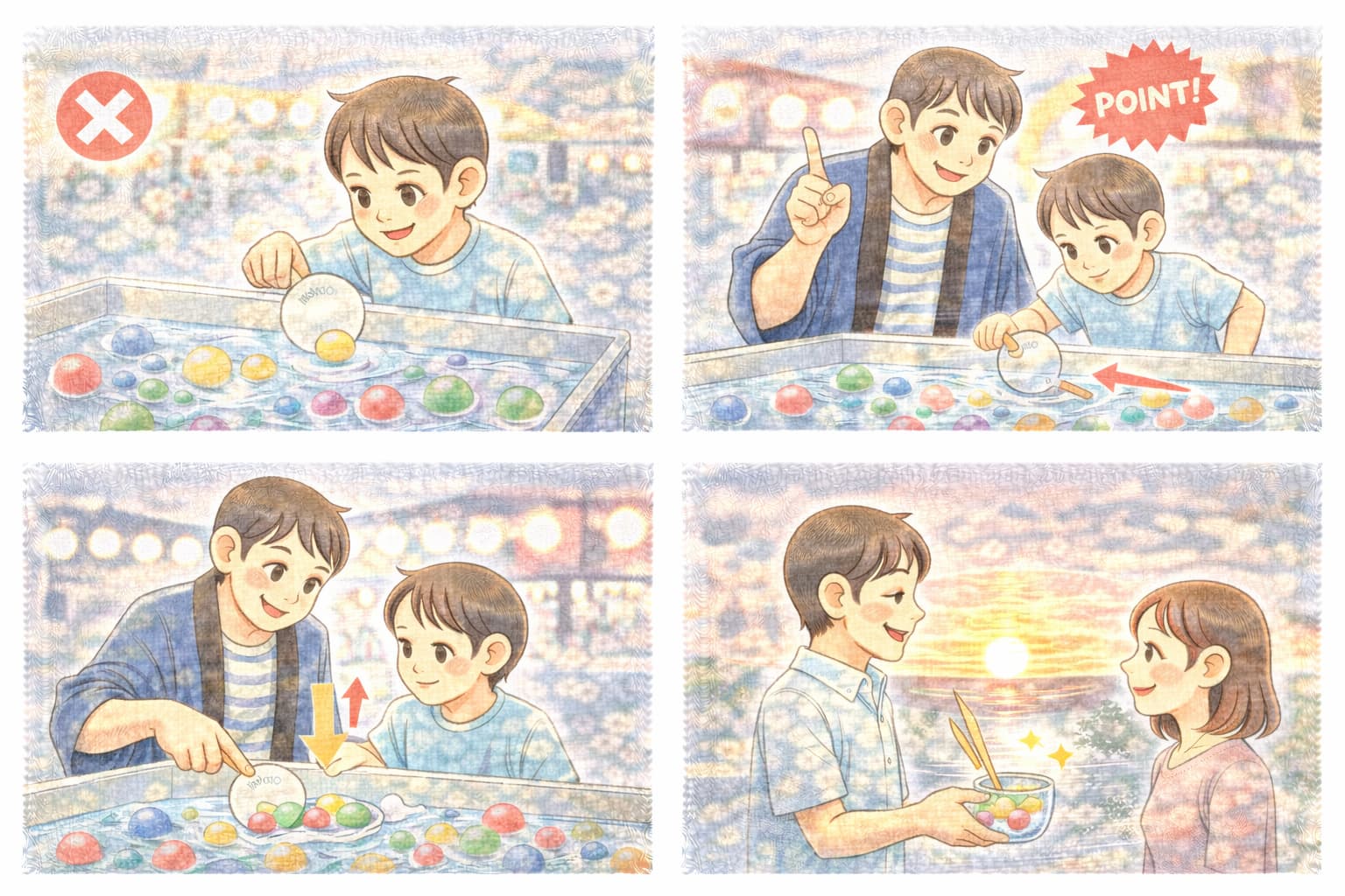 「スーパーボールすくい コツ」を理解し、適切なポイの使い方や角度の工夫を実践することで、誰でも確実に上達することができます。