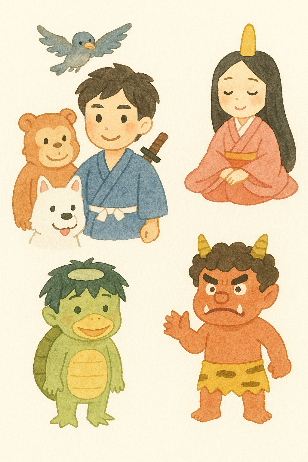 たとえば「桃太郎」は鬼退治の勇者として登場し、正義と協力の大切さを教えてくれる物語です。