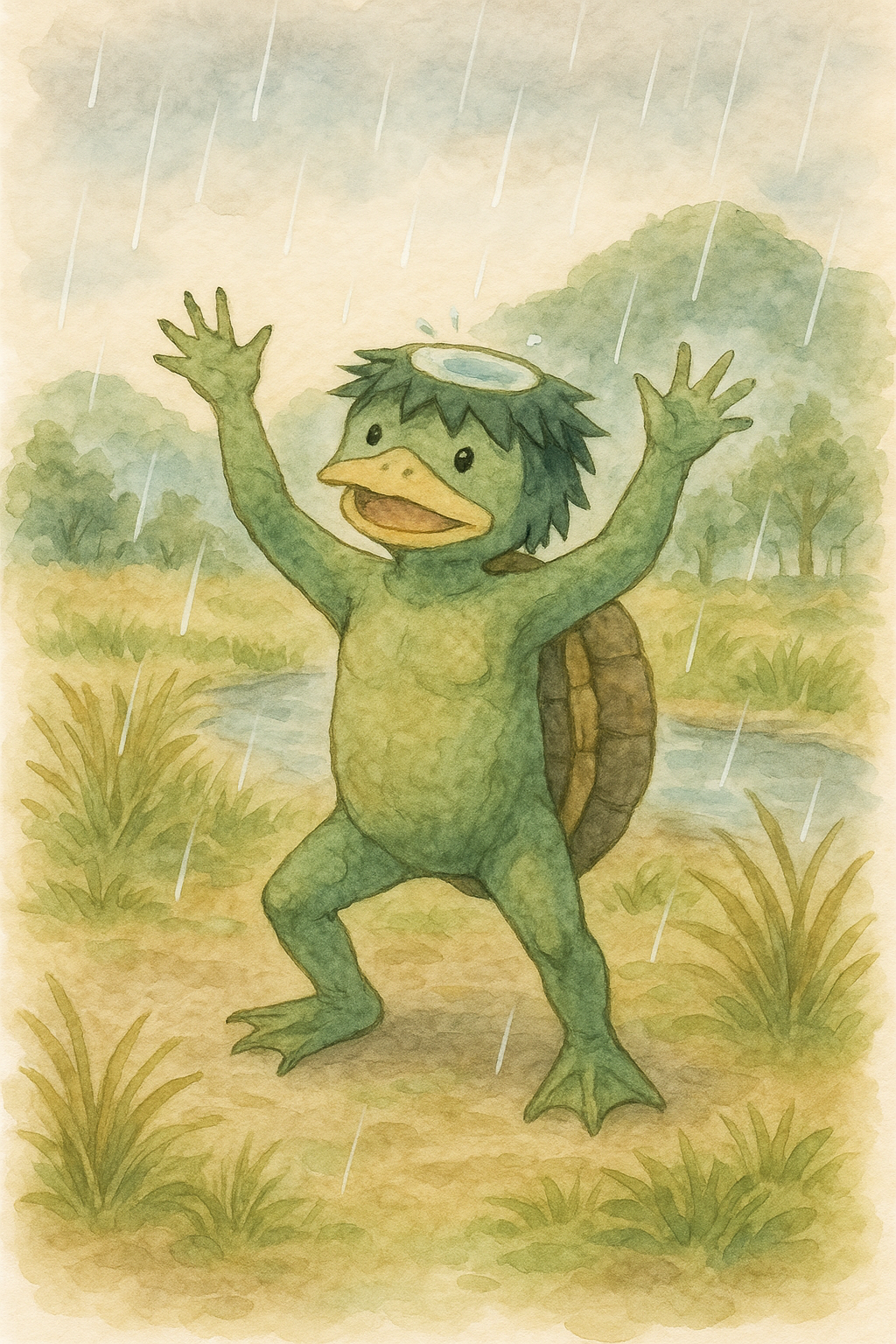「河童の雨乞い」の昔話は、干ばつに苦しむ村人が雨を願い、河童に助けを求めるという内容が多く見られます。