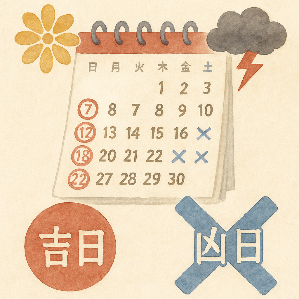 日々の行動のヒントとして、カレンダーの吉凶をうまく取り入れる参考になれば幸いです。