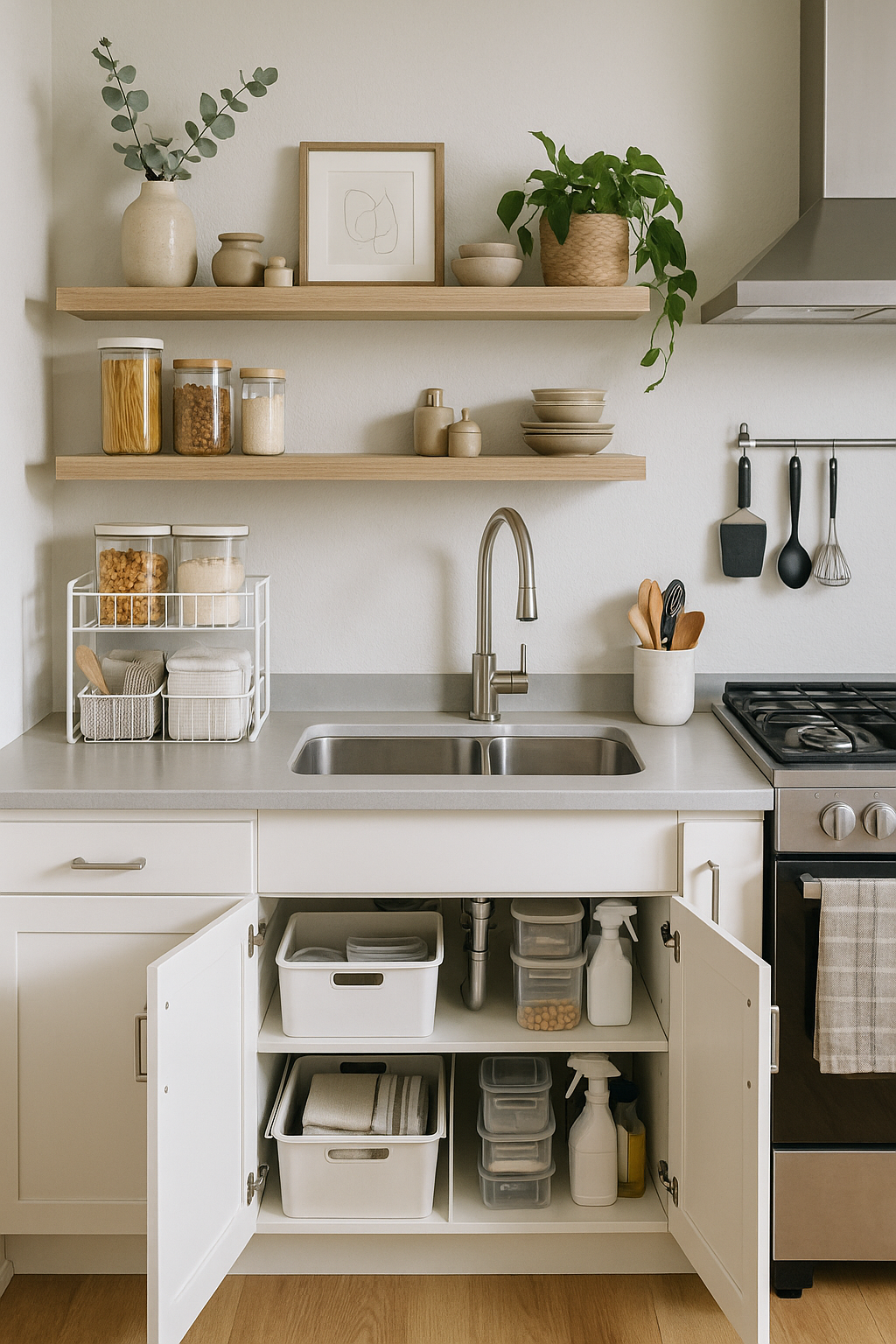 シンク下は奥行きが深く使いづらい印象がありますが、工夫次第で収納効率を大きく改善できます。