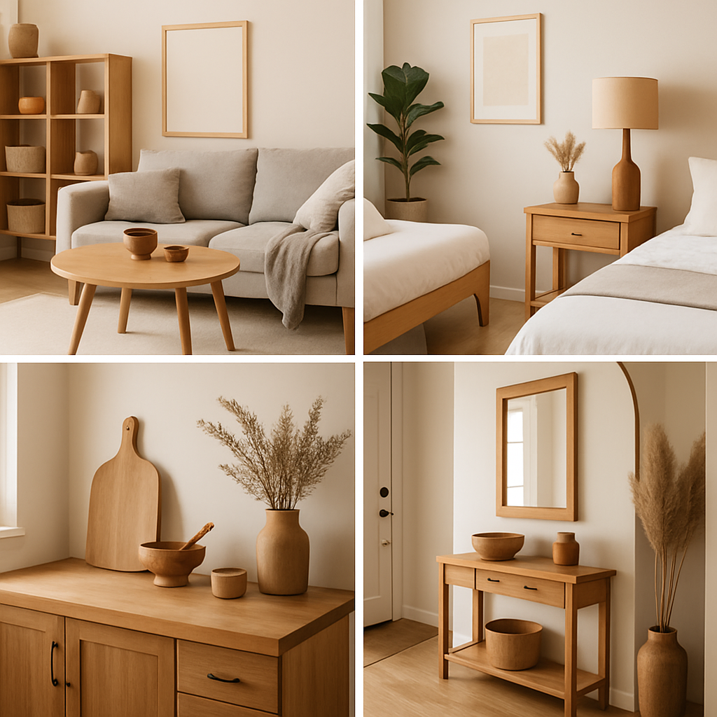 ここでは、リビング・寝室・キッチン・玄関といった暮らしの主要スペースでの木製雑貨の活用実例をご紹介します。