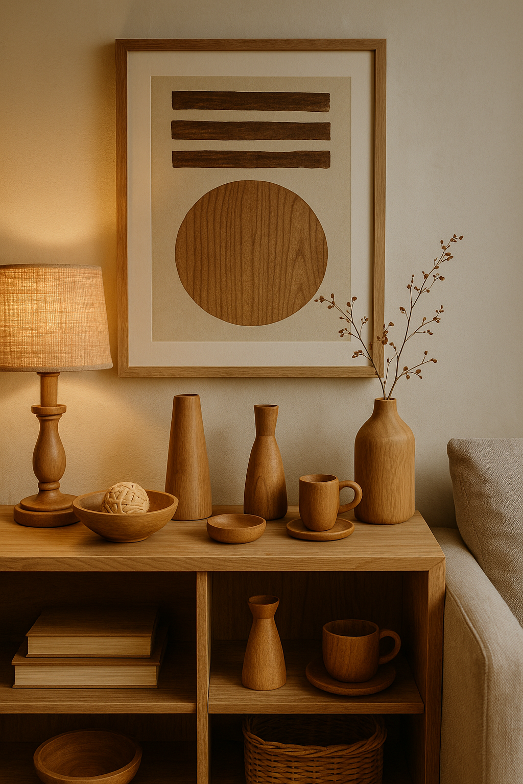 木製雑貨と照明の組み合わせは、空間の雰囲気を大きく左右する重要な要素です。