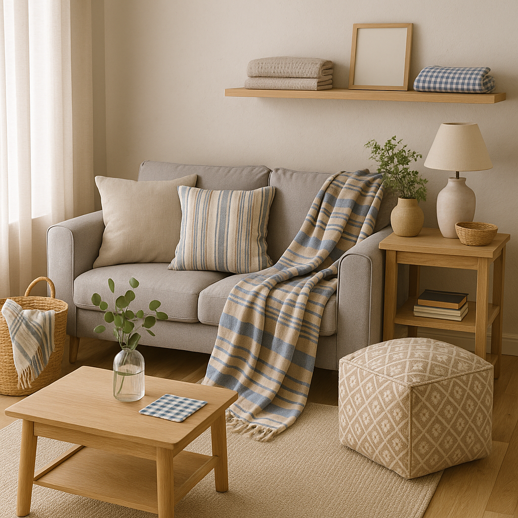 たとえば、ベッドスローやソファーカバーを季節に合わせた色や素材に変えるだけで、部屋全体のトーンが調和され、心地よい雰囲気が生まれます。
