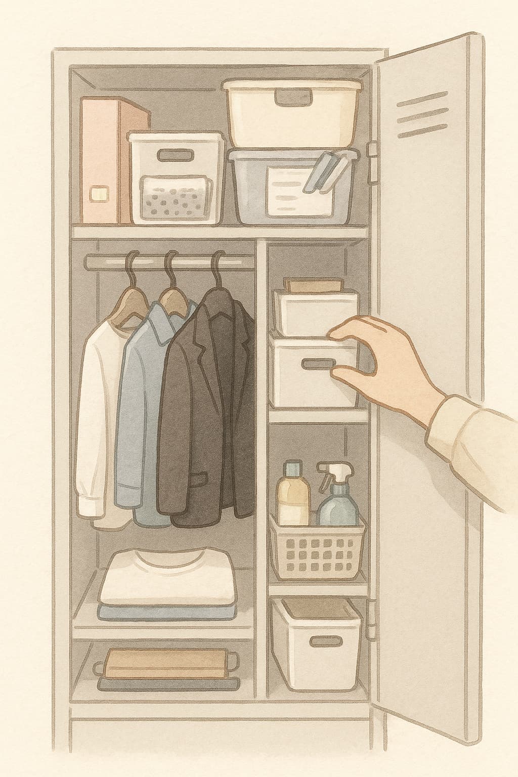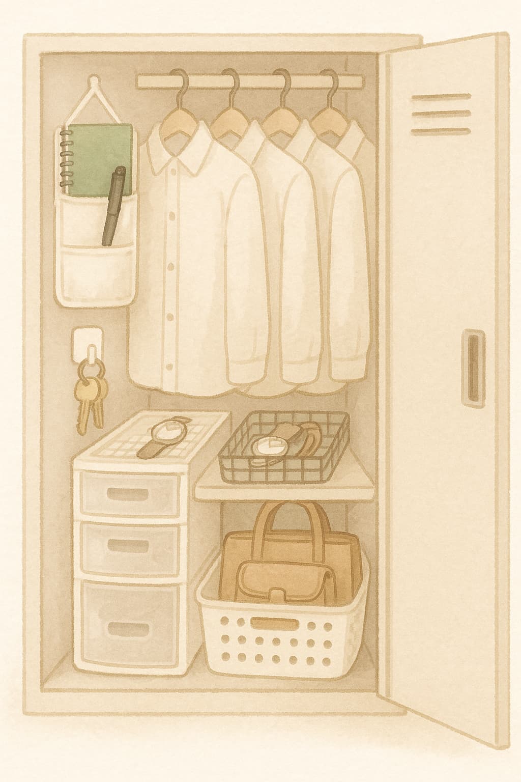 ロッカーは一時的な保管場所ではなく、日常的に使う収納スペースであることを意識すると、無駄なものが自然と減り、取り出しやすさも格段にアップします。