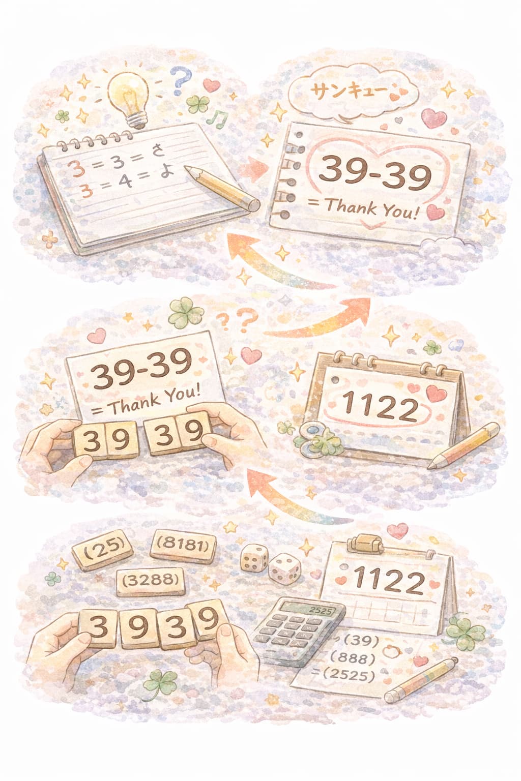 応援、感謝、安心といった前向きなニュアンスを意識して読みを当てはめることで、数字がメッセージの代わりになります。