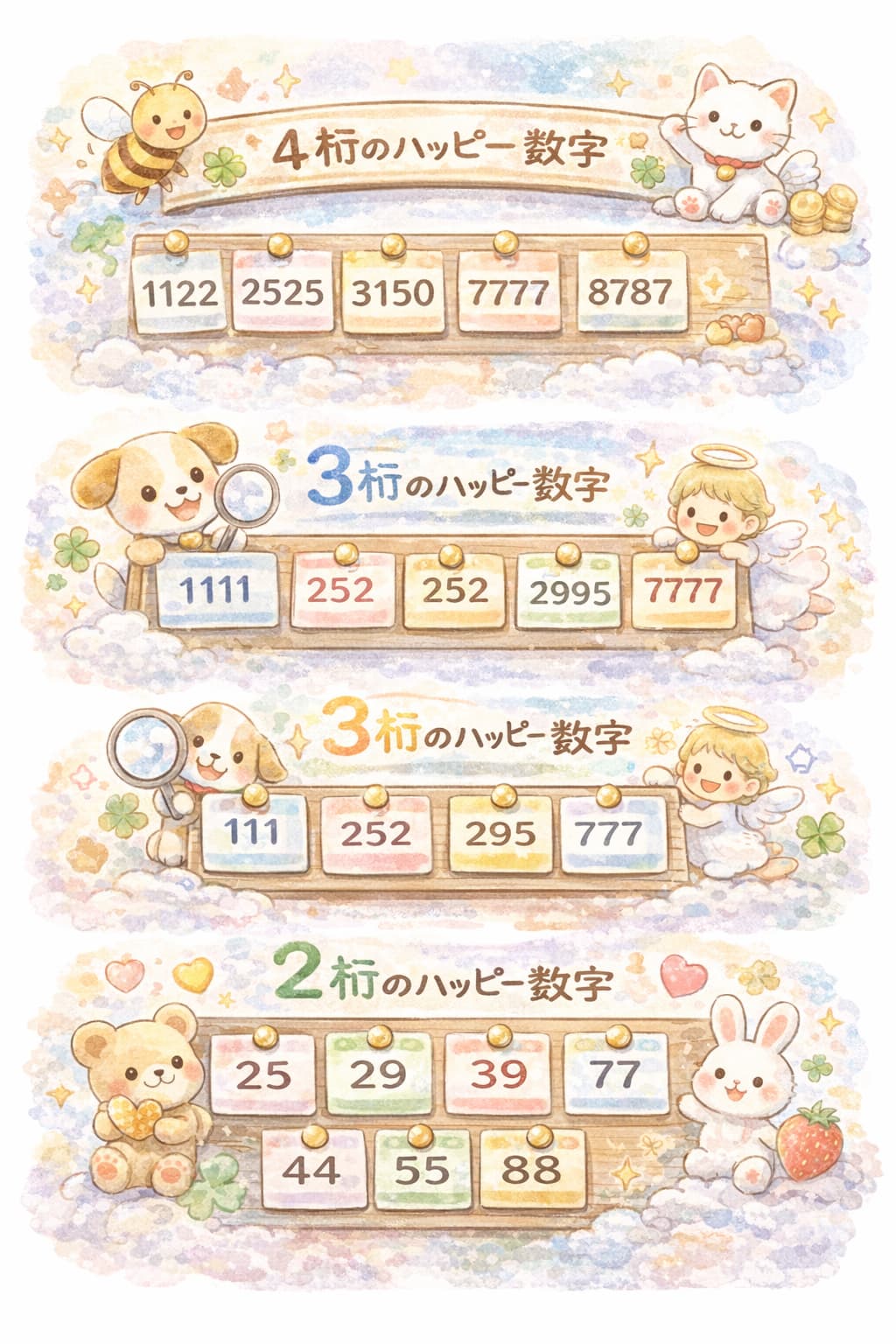ハッピー数字の語呂合わせは、桁数によって使いやすさや活用シーンが異なります。