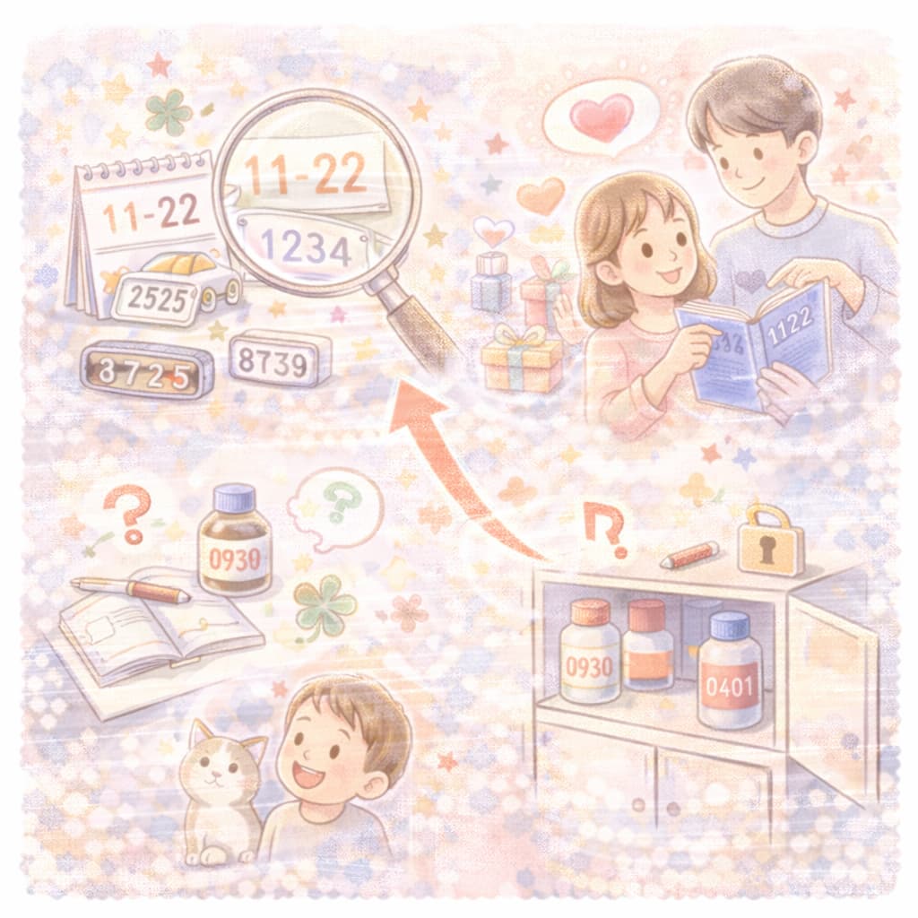 暗証番号や管理番号に使う場合は、推測されやすい数字や個人情報に直結する組み合わせを避ける必要があります。