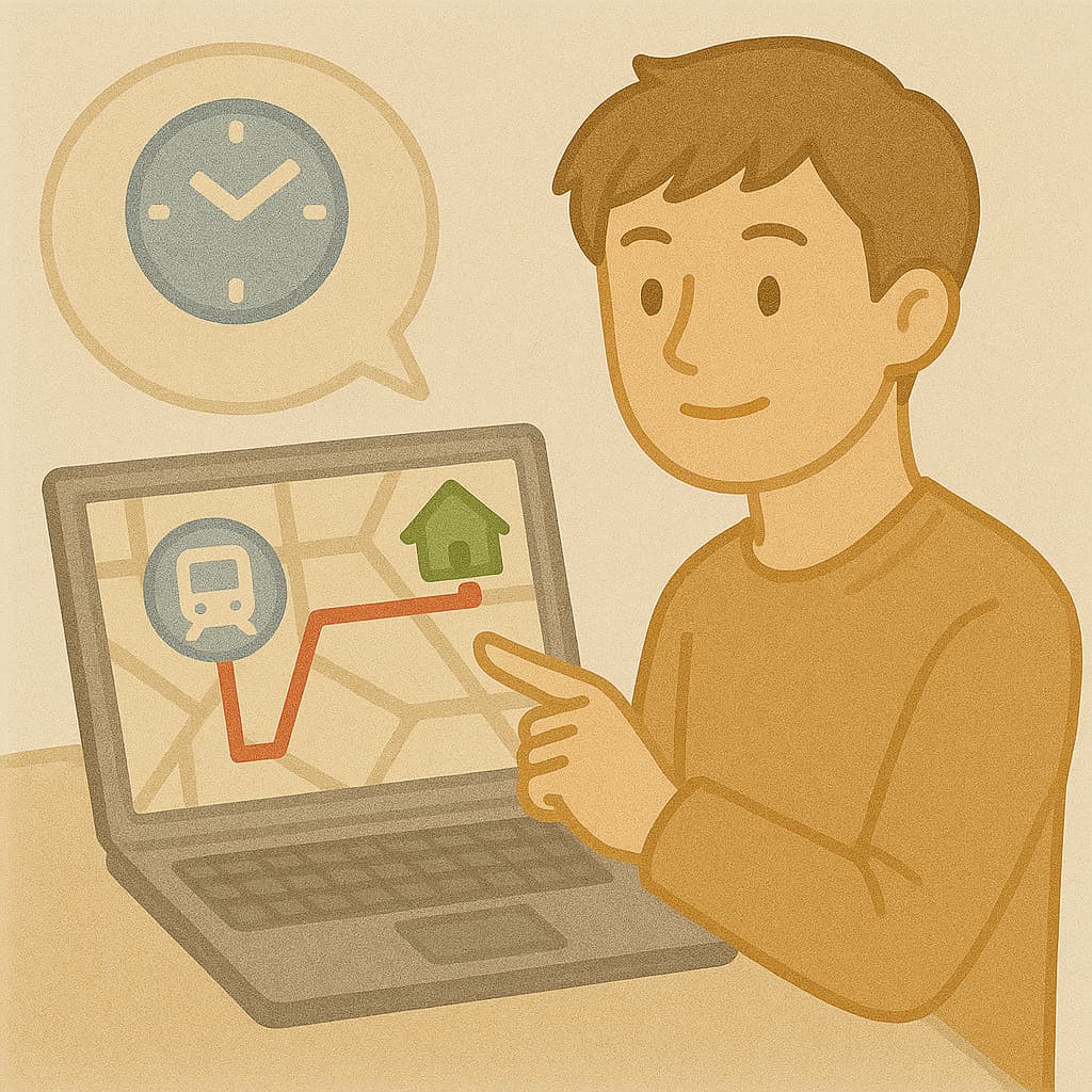 公共交通の路線図や時刻表を調べておくことで、意外な近道が見つかることも。