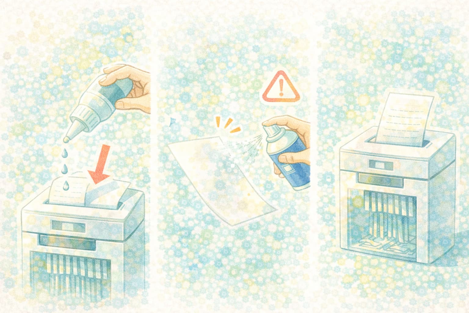 少量を紙に垂らして細断し、改善が見られれば追加しない、という流れにすると、ベタつきや紙詰まりのリスクを抑えられます。