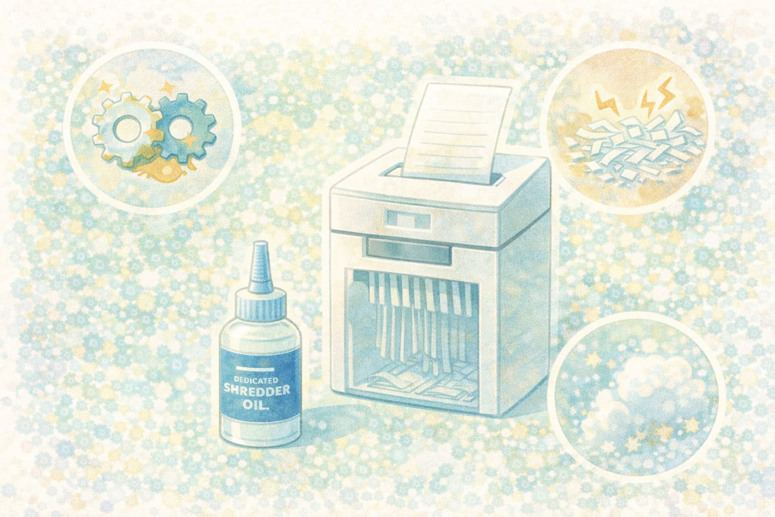 シュレッダーは紙を高速で細断する構造のため、重たいオイルは動作を妨げる原因にもなります。