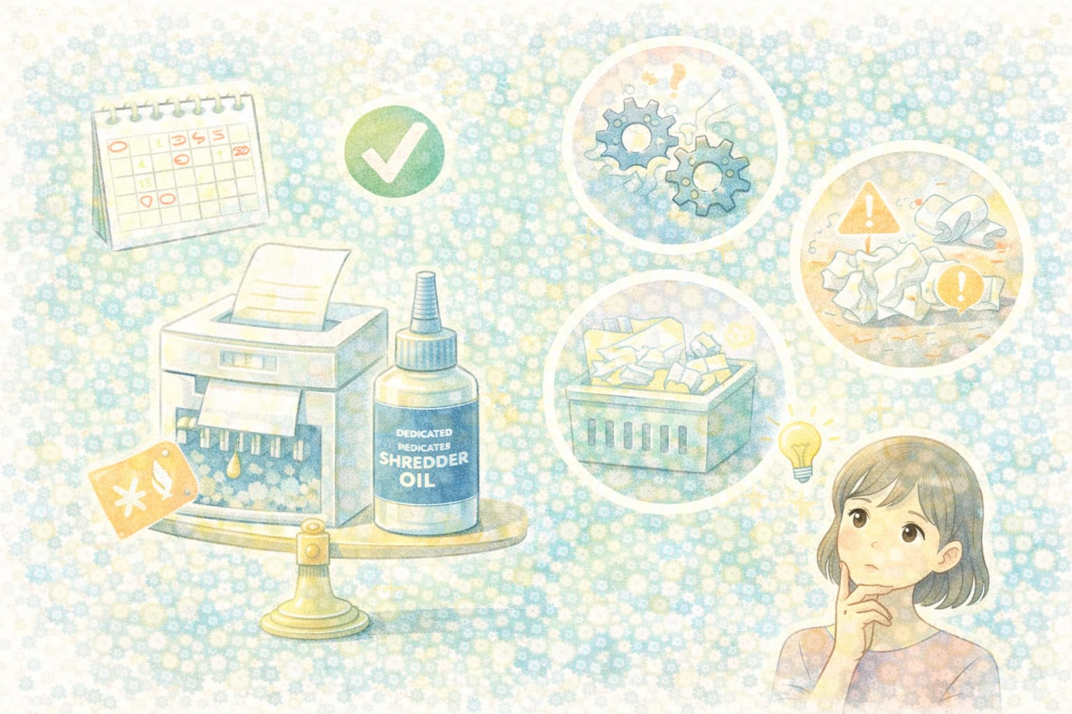 シュレッダーオイルを代用する場合は、「刃や内部に余計な負担をかけにくいか」「紙との相性が悪くないか」という点を基準に選ぶことが重要です。