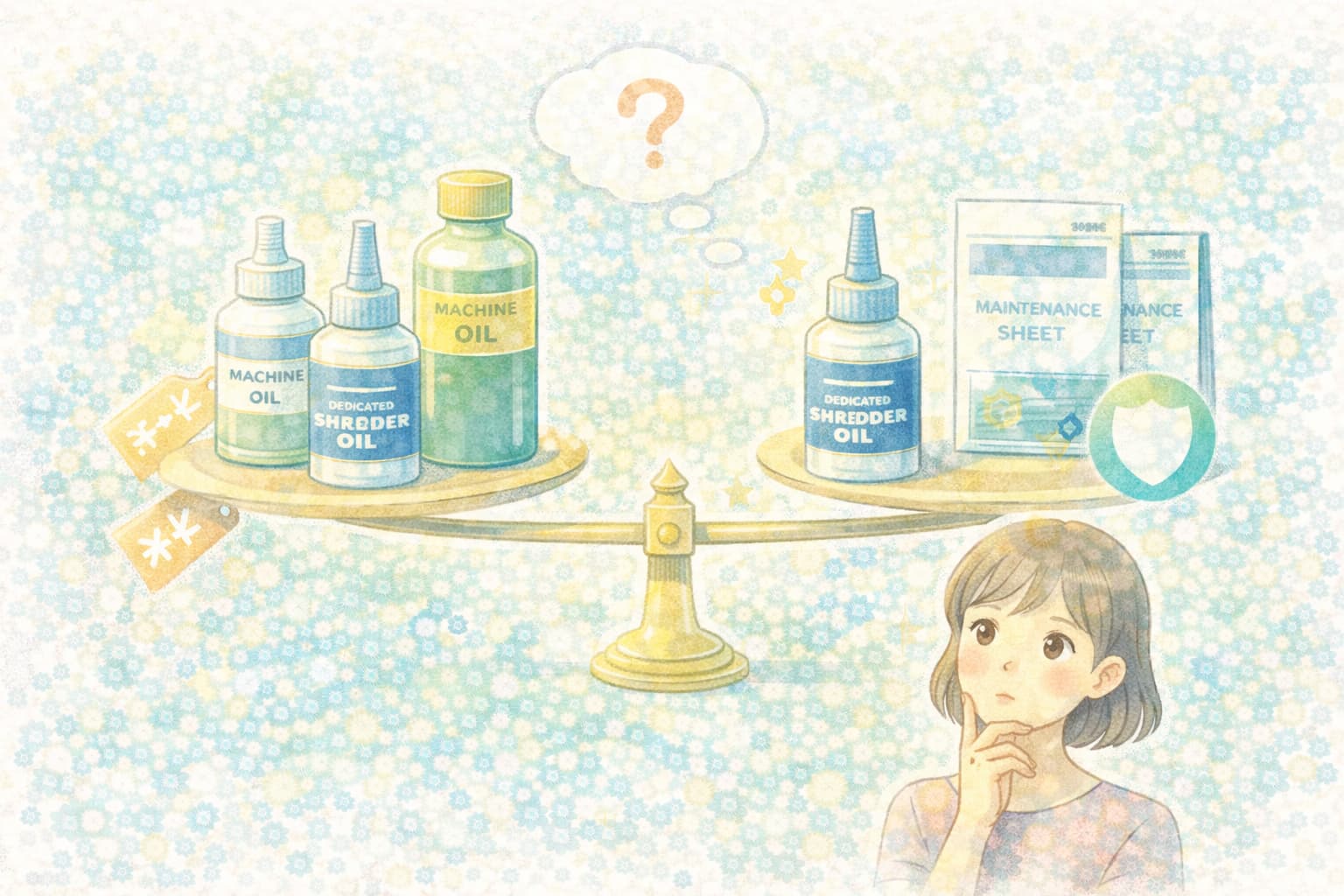 オフィス用(使用頻度が高い、連続運転が多い)なら、専用シュレッダーオイルの優先度が上がります。